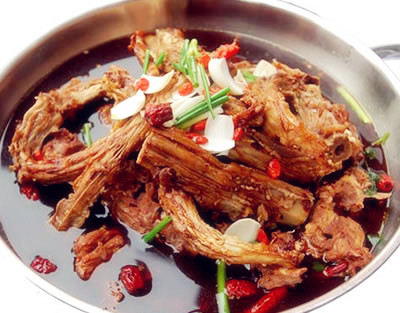 鍋底用料:羊脊骨(羊蝎子)3000g,羊肋排2000g,老姜5片,大蔥5段,蒜100g,鹽2茶匙(10g),雞精1茶匙(5g),醬油100ml,油1湯匙(15ml),燉肉料1份:丁香3粒,草果1枚,肉豆蔻2枚,香葉3片,花椒30粒,八角2顆,小茴香10粒,桂皮1片,黃芪5粒,南姜1支,砂仁2粒,枸杞5粒,黨參1根,涮料用料:面粉100g,土豆200g,平菇300g,茼蒿200g,粉絲50g,大白菜200g 做法: 鍋底做法: 1、羊脊骨和羊肋排洗凈切大塊,放入煮鍋中,加入適量冷水,大火煮開后撈出羊脊骨和羊肋排用冷水洗凈備用。 2、中火加熱炒鍋中的油至5成熱,放入老姜片、大蔥段和5粒蒜煸炒出香味。加入足量的冷水和羊脊骨、羊肋排,調(diào)成大火加蓋煮至即將沸騰,加入醬油,不需攪拌,待煮開后撇去浮沫,將燉肉料裝入調(diào)料包放入湯中,加入其余的蒜、姜片調(diào)成小火燜煮2小時。 3、上桌前取出調(diào)料包,連湯盛入火鍋,待重新燒開,先品羊骨再涮其他材料。 涮料做法: 1、面粉放入大碗,加入少許冷水,用筷子攪拌,再次加入少許冷水再次攪拌,直到面粉呈絮狀,碗中尚留少許干粉,用手將所有已形成絮狀的面片揉和在一起,反復(fù)揉按成一個面團(tuán),蓋上保鮮膜醒制10分鐘。上桌前在案板上鋪較多薄面,把面團(tuán)搟壓成0.5cm厚的大片,上下反復(fù)折疊2次,切成10份裝盤。用時將一份面片抖開,兩手向兩邊抻拉,拉成寬面條下入沸騰的湯鍋煮熟即可。 2、土豆洗凈去皮,切成0.3cm厚的大片。平菇洗凈,撕成小塊裝盤。茼蒿洗凈裝盤。大白菜取白菜葉部分掰開然后裝入一個小筐。 粉絲放入盆中,加入足量的冷水浸泡至回軟,然后裝盤上桌。 |