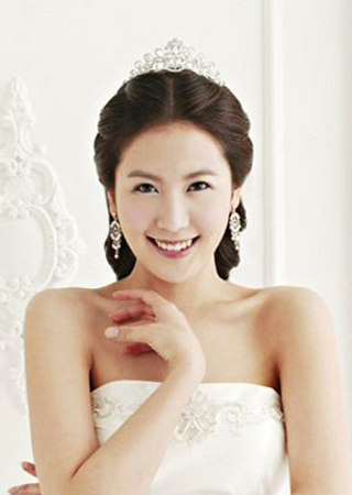 點評:想要搭配蓋頭紗,橫向皇冠最合適,女王感倍增,又不失嬌嫩和可愛。