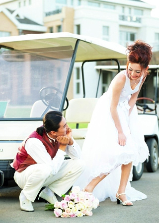 誰說一對新人只能選一款婚車?婚禮當天你有大把機會可以讓親朋好友和你自己徹底沉浸在滿滿的喜悅與興奮之中。當你為選擇加長悍馬還是選擇小巧的綠色甲殼蟲車而糾結(jié)時,不如兩輛都要:一輛可以將你們接到婚禮現(xiàn)場,另一輛則負責(zé)把你們送回家。另外,你也不必為參加婚禮的所有來賓都安排同款車輛,普通來賓可以享受四輪驅(qū)動的快感,父母們則可坐進午夜藍保時捷里?傊竽懸恍,讓各式各樣的美車裝點你的婚禮吧!