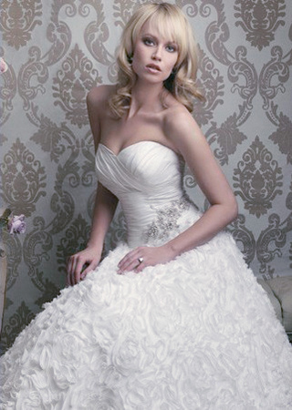 : 每個女人從小都有一個公主夢,渴望被自己的白馬王子倍加寵愛,每個女人穿上嫁衣的時候都希望自己是最幸福最漂亮的那一個,公主蓬蓬紗正適合擁有浪漫情懷的可愛氣質(zhì)新娘。