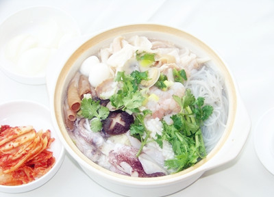 材料:蛋餃,魚圓,咸肉,大蝦干,水發(fā)肉皮,大白菜,粉絲,鹽,高湯 做法: 1 白菜洗凈切粗絲,粉絲冷水泡開,明蝦干用清水泡開,肉皮切塊; 2 咸肉用清水煮15分鐘撈出晾涼后切片; 3 取一砂鍋,用大白菜墊底,放上粉絲; 4 沿砂鍋邊依次擺上蛋餃、咸肉片、大蝦干、肉皮,使各種原料圍成一圈; 5 魚圓放在中間,高湯放鹽調(diào)好味后倒入砂鍋; 6 蓋上砂鍋蓋,小火燉煮至各原料都熟透即可 砂鍋三味