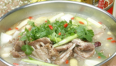 材料主料:熟羊排骨700克 配料:冬筍100克,水發(fā)木耳100克,油菜心100克,口蘑50克 調(diào)料:料酒15克,精鹽3克,味精3克,辣椒油30克,蝦籽醬油50克,蠔油25克,醪糟汁25克,高湯1000克,香油40克 做法: 1、熟羊排剁成4厘米見方的塊。 2、火鍋內(nèi)加入高湯,下入羊排。 3、下入口蘑,加料酒、精鹽、醪糟汁、蠔油燒開。 4、下人菜心、冬筍、木耳擺成型,加味精燙熟即可。辣椒油、蝦籽醬油、香油等食用。 日式福袋鍋