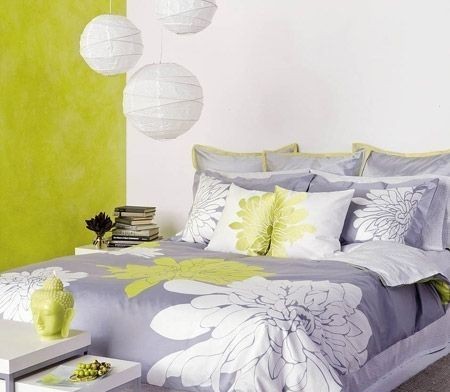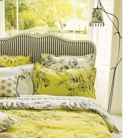 純粹的黃色床品是不夠的,那樣會(huì)使床面的色彩太過(guò)跳躍。將少量的白色與大面積的淡黃色搭配起來(lái),再加上花朵圖樣的花紋,浪漫又富于變化。