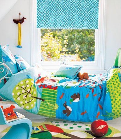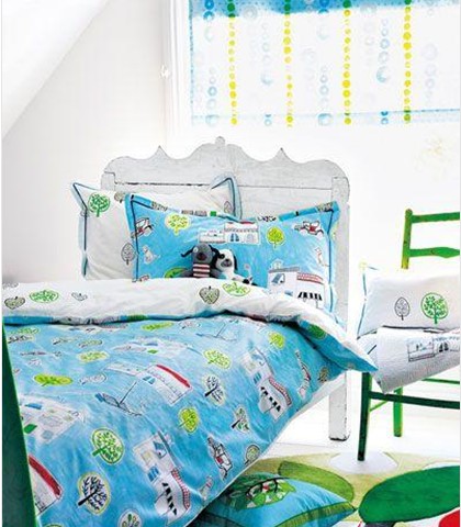濃烈色彩對比的床品及各種配飾來彰顯美好的童趣。