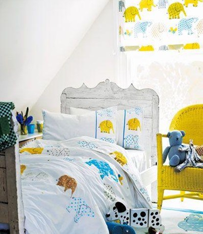 卡通大象圖案的床品或布藝玩偶,找回童趣。