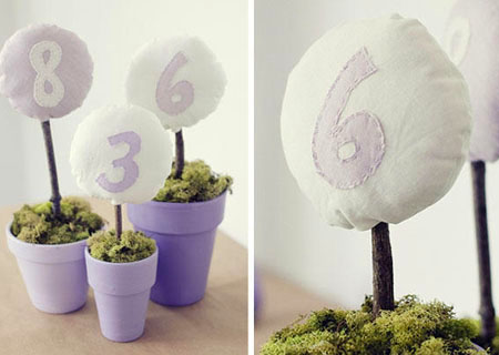 所需材料:棒子、烘干的苔蘚、面料、盆、油漆、縫紉機、針和線、畫筆、牛皮紙和棉花。