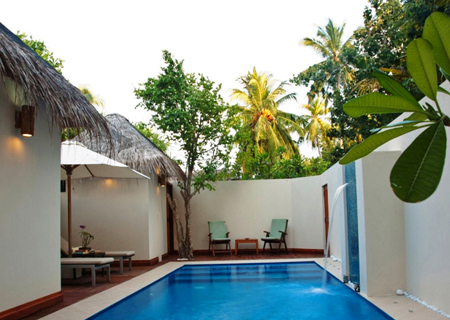 泳池別墅套房位于水面上。該套件包括兩個(gè)獨(dú)立的雙人臥室,一個(gè)客廳和一個(gè)共享的私人跳水池。臥室提供一個(gè)寬敞的浴室,打開別墅的私人花園即可看到一個(gè)單獨(dú)的大型開放式淋浴的海灘別墅的所有設(shè)施。完整的泳池別墅套房是一個(gè)絕對(duì)隱私的墻包圍。這是一個(gè)家庭的理想空間。