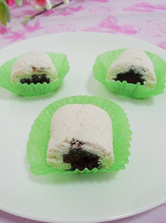 10.使豆沙餡被奶片包裹,卷成圓柱形的長條奶卷