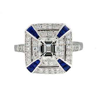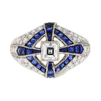 這款藍(lán)色寶石組成的規(guī)則形狀新娘婚戒將新娘的指間變的更加具有奢華感,藍(lán)色的寶石與小顆粒鉆石的混合性設(shè)計(jì)另新娘的奢華感完美的展現(xiàn)出來(lái)。