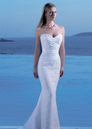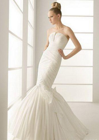 當(dāng)然不是每個(gè)人都愛(ài)魚(yú)尾婚紗,但是愛(ài)魚(yú)尾也不需要什么理由。盡管它對(duì)女性的身材十分挑剔,可是穿上魚(yú)尾婚紗所呈現(xiàn)的女性柔美也是獨(dú)一無(wú)二的。不說(shuō)別的,只要你在巴黎看過(guò)那些上流社會(huì)的聚會(huì),你就會(huì)發(fā)現(xiàn),魚(yú)尾是她們的最愛(ài),又或者是一種身份的象征。 超越時(shí)間和時(shí)代的婚紗,如有人魚(yú)公主一樣優(yōu)雅的魅力。魚(yú)尾裙又稱鞘形裙;裙寬與肩寬等同。依身體曲線裁剪,它的外輪廓接近與人身體的外輪廓,即使人體被完全覆蓋,也能顯露人體體形。因?yàn)橘N緊人體,不用襯裙,裙擺下端可以隨意設(shè)計(jì)成美人魚(yú)式。一定要搭配一雙高跟鞋,這樣的完整呈現(xiàn),才會(huì)光芒四射,艷冠群芳。 |