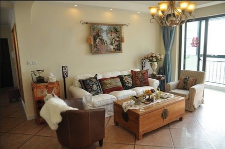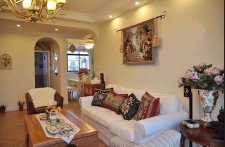 客廳這邊的沙發(fā)和沙發(fā)后的掛件,感覺(jué)是不是有點(diǎn)民族特色呢?