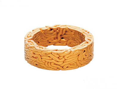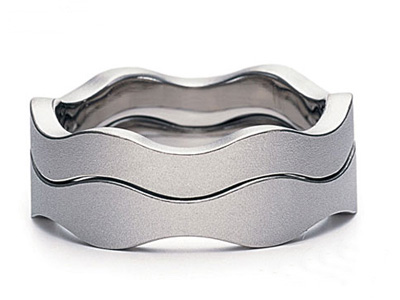 波紋戒 線條簡(jiǎn)潔明朗,戒面的波紋設(shè)計(jì)時(shí)尚個(gè)性,平常喜歡格紋休閑襯衫、T 恤、牛仔的新郎可以選擇波紋戒,搭配十分隨意有型。即使你愿意戴上Marc Jacobs 的裝飾戒,這樣的婚戒也不會(huì)突兀。
