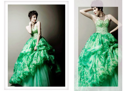 當(dāng)然禮服的選擇最重要的就是根據(jù)自己的膚色和氣質(zhì),今年婚紗天馬行空的色彩創(chuàng)意讓人耳目一新,柔和的淡粉、嫩黃、冰藍(lán)、嫩綠色……徹底顛覆了人們心目中傳統(tǒng)婚紗的概念。