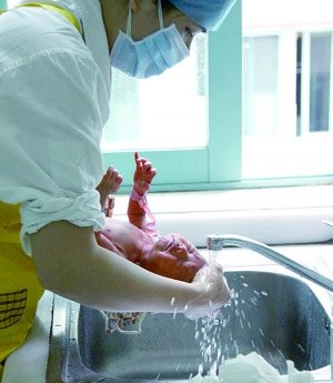 早上9時許,廣西中醫(yī)學(xué)院附屬瑞康醫(yī)院(以下簡稱瑞康醫(yī)院)產(chǎn)科住院部過道上,初為人母的黃梅(化名)和丈夫認(rèn)真看著墻壁上怎樣給寶寶洗澡的宣傳畫,邊看邊和丈夫討論出院回家后怎么給寶寶洗眼睛。 瑞康醫(yī)院產(chǎn)科副主任醫(yī)師黎燕玲副教授稱,對初為人父母的爸爸媽媽來說,給寶寶洗澡可不是件簡單的事情。寶寶出生后,在產(chǎn)婦還沒出院的這些日子,會有專門的護(hù)士給寶寶洗澡,一旦出院,父母就要親自給寶寶洗澡啦。寶寶洗澡不但能清潔皮膚,還可以加速血液循環(huán),促進(jìn)寶寶生長發(fā)育,所以學(xué)會給寶寶洗澡是每個父母應(yīng)會做的事情。寶寶出生后第二天,有條件的話就應(yīng)該每日給寶寶洗一次澡了。該產(chǎn)科護(hù)長李桂鳳特別介紹了給寶寶洗澡的一些步驟和細(xì)節(jié)。