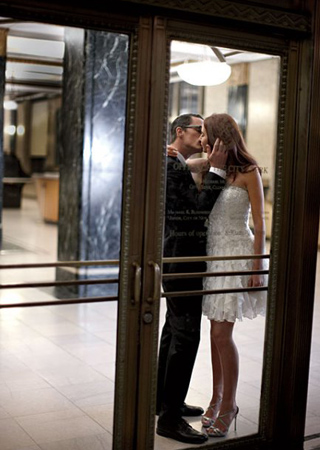 躲在市政廳的角落里擁吻。甜蜜死了。這一天,就應(yīng)該毫無保留的表現(xiàn)自己的愛,羨煞旁人吧~~~ |