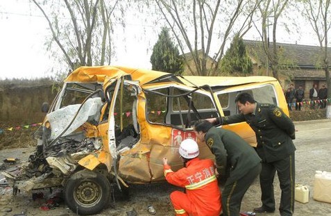 甘肅慶陽正寧縣幼兒園校車車禍現(xiàn)場(chǎng)