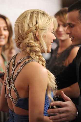 同時(shí),從右邊編一支稍細(xì)一點(diǎn)的辮子。在右邊耳朵下面的位置將兩支辮子匯成一支辮子。小小的改變讓這個(gè)發(fā)型的各個(gè)角度都可愛無比。