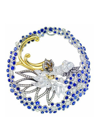 寶藍(lán)色的鉆石鑲嵌在鉑金材質(zhì)上,讓這款新娘婚戒變的特別具有奢華的感覺(jué),中間的一只比翼鳥(niǎo)設(shè)計(jì)也是整款戒指的點(diǎn)睛之筆,將整款婚戒變的活靈活現(xiàn),將新娘的指間襯托的更加一股奢華的氣質(zhì)。 |