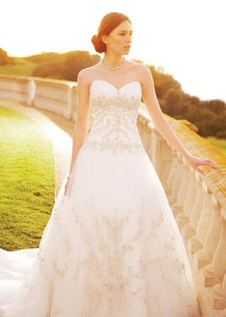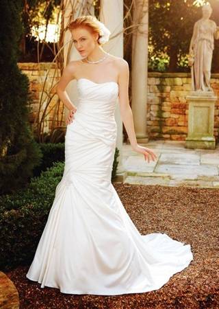 修身款的婚紗禮服能夠突現(xiàn)新娘的曲線,緞面感的婚紗比起紗質(zhì)婚紗來(lái)說(shuō)會(huì)更加厚實(shí),也更適合在秋季穿著。