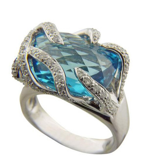極具奢華感的一款新娘戒指,正方形的大顆粒藍(lán)色寶石是這款新娘婚戒的重點(diǎn)修飾之處,不規(guī)則的小鉆石鑲嵌尾鉗設(shè)計(jì)將整款新娘婚戒的設(shè)計(jì)感大大的提升,光滑設(shè)計(jì)的戒環(huán)讓新娘的指尖變的更加的舒適。