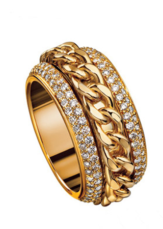 Ca Lou的這枚戒指充滿了古董元素,同樣給人以奢華,高貴的感覺,金色與黑色晶石的搭配,小碎鉆以及寬大的指環(huán)都讓人很有存在感,最適合帶有古典氣質(zhì)的新娘。