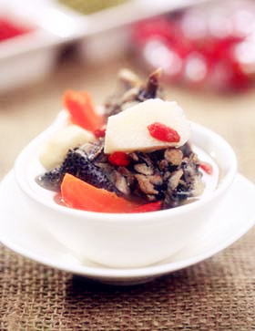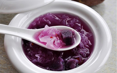 原料:烏雞、山藥、枸杞、胡蘿卜、蔥、姜。 調(diào)料:胡椒粉、姜、蔥、鹽、紹酒。 做法: 1、烏雞切塊、山藥去皮切塊,胡蘿卜去皮切塊,蔥切段,姜切片; 2、烏雞一定要涼水下鍋才可以吐凈臟東西; 3、大火焯出烏雞里的血沫; 4、撈出烏雞控干水發(fā),用熱水洗去烏雞表面的浮沫,鍋內(nèi)做水,水熱后放入烏雞塊,蔥、姜、烹入紹酒; 5、大火燒開(kāi)后,蓋上蓋改小火燉40分鐘; 6、倒入枸杞、撒入胡椒粉少許,鹽少許調(diào)味; 7、倒入山藥塊略微燉軟即可,不用長(zhǎng)時(shí)間要不營(yíng)養(yǎng)流失了; 8、加入胡蘿卜燉5分鐘即可出鍋裝碗了。 紫薯銀耳湯