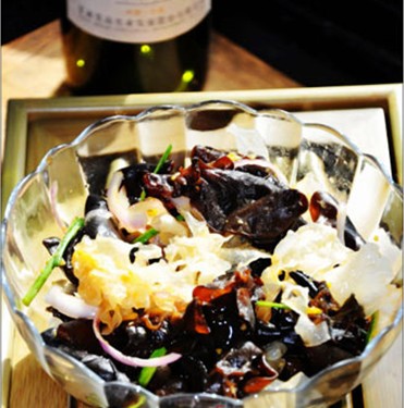 木耳和銀耳用溫水泡發(fā),洗凈撕成小片,放入蒜苗絲和洋蔥絲,放入鹽、糖、雞精、干貝露、剁椒醬、醋、香油、芥茉油。拌勻即可。