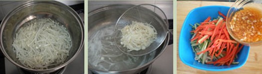 3、金針菇放入沸水中煮約一分鐘,撈出瀝干晾涼;