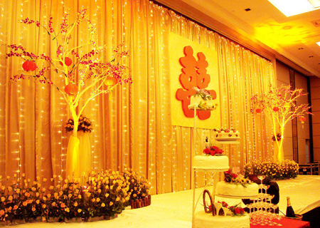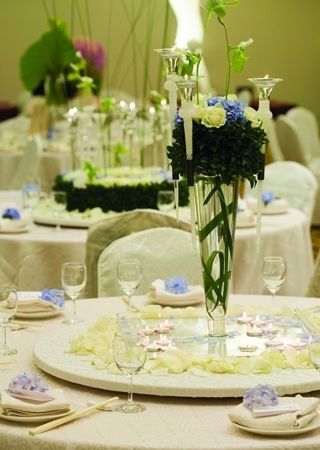 如果層高較低,那么在裝飾方面選擇體積較小的裝飾物,以干凈簡潔為主,不宜過于繁復夸張;桌面布置以精致簡約為主,桌花也應選擇低式桌花,造型簡潔精致,顏色也以淺色為主,盡量避免桌花太高太大,給人厚重的感覺。