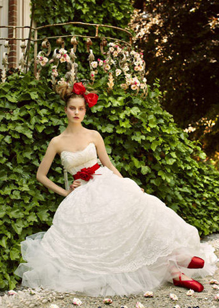 可愛(ài)的盤(pán)發(fā)當(dāng)然要搭配同樣惹人憐愛(ài)的蓬蓬婚紗。