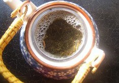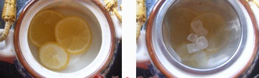 檸檬切片放入茶壺內(nèi),在茶隔網(wǎng)中放入冰糖和茶葉,注入開水,3分鐘后,即可。