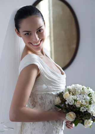 你在頭發(fā)造型的時(shí)候忽略考慮要佩戴的面紗或者頭飾。面紗或許會(huì)貫穿你整個(gè)儀式,所以它很重要。在設(shè)計(jì)整體頭發(fā)造型的時(shí)候,一定要考慮到它的長度和款式,也要多找一些面紗的樣本,找到風(fēng)格最適合自己的。