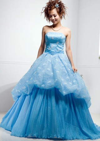 藍(lán)色象征著高貴,貴族血統(tǒng)被翻譯成英文是"blue blood",這款藍(lán)色的婚紗在設(shè)計(jì)上顯得尤為可愛俏皮,裙擺的分層特意營(yíng)造出蓬蓬的效果,如果你是個(gè)性格活潑,生性好動(dòng)的女孩,那么這款充滿活力的婚紗無(wú)疑將你的甜美可愛氣質(zhì)發(fā)揮到極致的選擇。