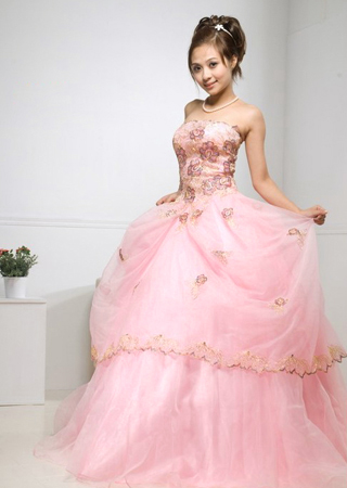 粉色是每一個(gè)女孩兒時(shí)的夢(mèng)想,記得小時(shí)候我們總是渴望著夏天的到來,男孩會(huì)說夏天可以游泳,而女孩藏在心底的愿望便是可以穿上好看的粉粉的連衣裙,這款婚紗在顏色上選用了富有童話氣息的粉色,相信一襲粉色著裝的新娘一定會(huì)得到新郎的特別的疼愛。