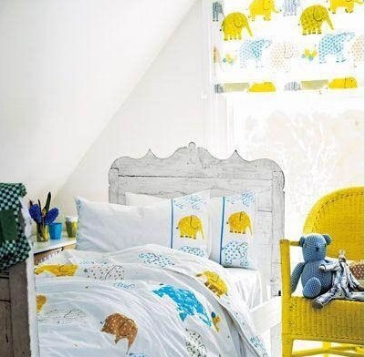 卡通大象圖案的床品或布藝玩偶,找回童趣。