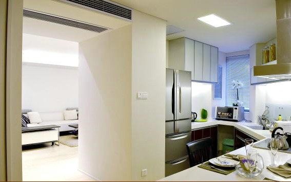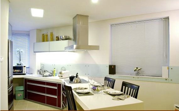 不規(guī)則的櫥柜是設(shè)計(jì)師鑒于房型特征設(shè)計(jì)的,巧妙避免了房型的視覺(jué)突兀,同時(shí)又確保櫥柜的絕對(duì)實(shí)用。由櫥柜延伸出的餐桌設(shè)計(jì),為主人在沒(méi)有特定餐廳的居室里,提供了寬敞的就餐空間,而開(kāi)敞式的布局也完全符合主人不用油鍋的生活習(xí)慣。 |