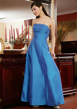 藍色塔夫綢長款抹胸禮服
