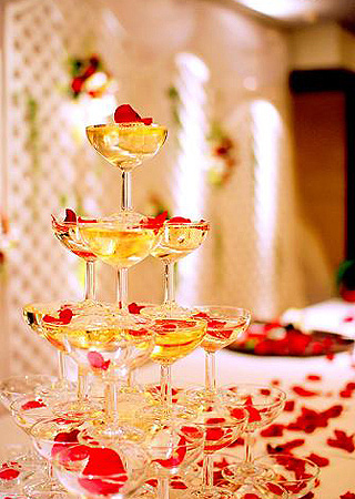在婚禮儀式中,如果不是在倒香檳酒的環(huán)節(jié)而香檳塔出現(xiàn)意外,不要過分的渲染香賓塔倒塌的事實,可以讓酒店服務人員悄悄的重新擺好就可以了。這時有經驗的攝像師也不會把鏡頭對著倒塌的香賓塔的。