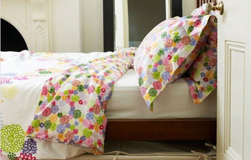 抽象的小提花圖案布滿床品表面,同時(shí)枕套與被面與之相搭配,全棉質(zhì)地非常舒適,整個(gè)臥室都被春意盎然所包圍。