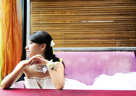 坐姿:上半身的姿態(tài)最關(guān)鍵 當(dāng)與親屬拍照時(shí),上半身的姿態(tài)最關(guān)鍵,如果有了“啊!終于能坐下了” 這種想法,人瞬間就會(huì)像泄了氣的皮球似的貓起腰來(lái),會(huì)很難看,不能大意。所以要時(shí)刻保持緊張感,特別是如果新娘穿著低胸禮服,坐在椅子的中心處,扭著腰,這樣顯得肩幅寬,體型苗條。穿細(xì)長(zhǎng)禮服,把腿斜向垂下,可以使腿顯得修長(zhǎng);如果新郎無(wú)精打采地坐著時(shí),褲腿會(huì)自動(dòng)向上提,露出襪子,不雅觀,所以要特別注意,一定要在坐下去前,先提一下膝蓋部的褲子。 站姿:自然地挺直背脊,互相有意識(shí)拼成八字形 新郎微曲右胳膊,讓新娘把手插在肘里,要注意的是新娘不要拉著新郎的衣服,讓人有膽怯的感覺。另外,新郎不應(yīng)該為了挺直背要過分突出腹部,不要緊挽著新娘,以免踩到裙子,也不要離得太遠(yuǎn)。新娘也不要死死地抱著新郎的胳膊,好像生怕他會(huì)逃跑似的。 |