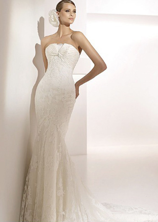 婚紗外面點(diǎn)綴著精美的花紋刺繡,原本應(yīng)該是腰帶的輕紗卻神奇的包裹在了抹胸上面,讓美麗的新娘多了一些嫵媚的神情,緊身的魚尾裝設(shè)計(jì)完美的展示了新娘的迷人曲線,長(zhǎng)長(zhǎng)的拖尾拖走了眾人的祝福。