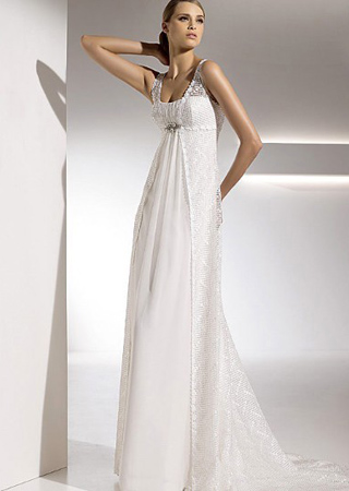 同樣的潔白色婚紗,簡(jiǎn)單明了的造型沒(méi)有一絲的多余,使得新娘看起來(lái)出水芙蓉般的出塵脫俗,而當(dāng)一件輕紗式的外罩輕輕地籠罩在了新娘的身上時(shí),卻給這份出塵之姿增添了一絲的嫵媚,整件外罩在腰肢中央被一個(gè)小小的銀色卡扣系住,讓新娘如同籠罩在了一片云霧之中,迷離且動(dòng)人。 |