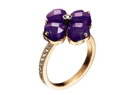 Dior Gracefully戒指 紫色寶石與黃金的搭配,顯示了高貴不凡的氣質(zhì),指環(huán)上的碎鉆鑲嵌,更是點綴出專屬于Dior的璀璨光彩。