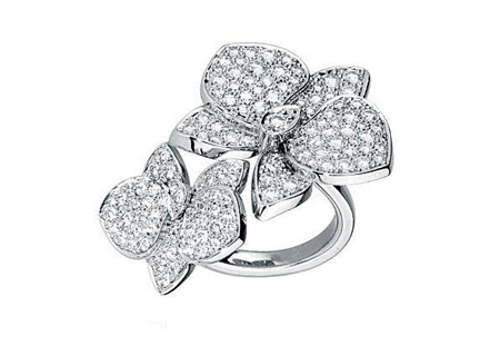 Cartier蘭花系列白K金鋪鑲鉆石戒指 卡地亞經(jīng)典蘭花造型戒指,宛若開在指間的天地精靈,源自自然的設(shè)計靈感,配以精美的美鉆,承襲卡地亞一貫的優(yōu)雅與高貴。