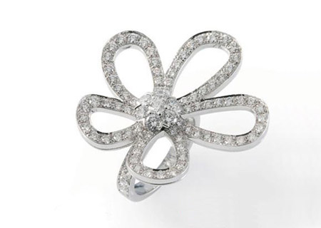 : 當愛情盛開在心房,請讓花朵盛開在指尖――佩戴花朵造型的戒指,可以為濃情蜜意更添一分浪漫!以單顆鉆石鑲嵌的戒指系列,象征著一份堅貞的愛。