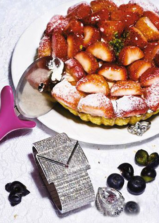 : 愛的癡纏將內(nèi)心的空白填滿,入口即化的甜潤比布丁更柔軟,仿佛剛剛開啟的心扉,充滿了對未來的憧憬與幻想,唯有水果塔的甜酸味道,與色彩絢麗的戒指最能詮釋甜蜜的心意。