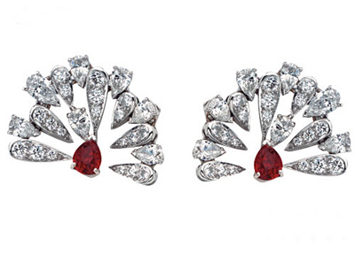 Qeelin白金鑲鉆如意形耳環(huán)具有極為個(gè)性的設(shè)計(jì),上半部分的圓形和下半部分的微小桃心用不同的反面鑲結(jié)在一起,圓形和小桃心的外圍都用小顆粒鉆石鑲嵌起來(lái),這款耳環(huán)款式設(shè)計(jì)極具個(gè)性,簡(jiǎn)單中透露著溫婉的味道。 Van-Cleef&Arpels-Flower耳環(huán) Van-Cleef&Arpels花朵耳環(huán)使用半花形的設(shè)計(jì),花蕊上嵌入大顆的鉆石,在不規(guī)則的排列中中間夾入紅色的鉆石,這顆紅色鉆石做為點(diǎn)睛之筆,將這款耳環(huán)變的極具女人味道。紅色是屬于新娘的顏色,大粒的紅色鉆石將耳環(huán)瞬間提高了優(yōu)雅的味道。 |