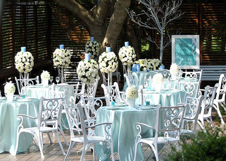 【藍色暢想夢幻光影主題婚禮】 色彩搭配的基礎在于不同層次的色彩的存在。比如藍色主題婚禮就有湖藍色系、海藍色系、以及愛情海色系(藍色與白色搭配)等等。色系的選擇在于新人的喜好,同時也在于婚禮主題的選定,婚禮氛圍的規(guī)劃等等,當然,還可能會受到家人意見的影響。所以,有心的新娘趕快開始你的婚禮搶灘戰(zhàn)吧,要拿出減肥般的勇氣和意志,以及購物時的熱情和毅力,來完成你人生中最偉大的華麗轉身吧!