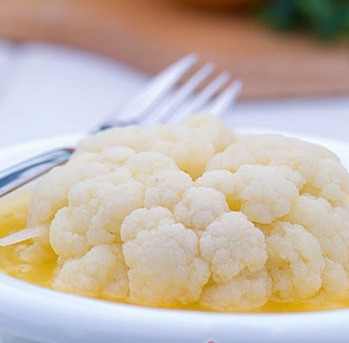 2、鍋里燒開一鍋水,放幾滴油,少許鹽,放入菜花,水開后關(guān)火,撈出來,用涼水沖一下,瀝干水分待用;