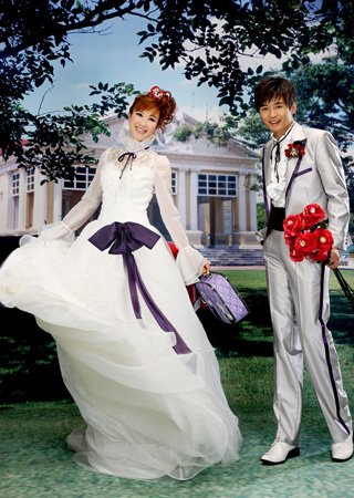 這種夜是時(shí)下最主流的婚紗攝影方式,隨著婚紗攝影工作室的興起,外景婚紗照逐漸成了主流趨勢。如今無論是專業(yè)的婚紗影樓還是攝影工作室,基本上都是采用內(nèi)景外景相結(jié)合的方式,由專業(yè)的化妝師攝影師在室內(nèi)的人工背景前拍攝,以及部分城市或城郊外景的拍攝,價(jià)格比單純的室內(nèi)婚紗照稍貴一些。在外景的最大好處是你的神態(tài)會(huì)變得很自然可愛,有優(yōu)美的風(fēng)景作為襯托。外景空間大,也給攝影師一個(gè)極大的空間去幫你避開缺陷,另外鏡頭中長景的運(yùn)用,會(huì)把你溶入最美麗的風(fēng)景中,有意境的婚紗照就自然耐看又與眾不同,這就是以景襯人的道理。